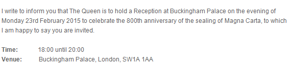 23 FEBRUARY 2015 Today 23 February a delegation of AIJA leadership is invited to attend a reception at Buckingham Palace. Just to confirm how reputable our organisation is!